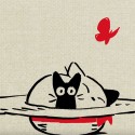 The animation is deceivingly simply but I’m sure it takes nothing short of a practiced hand to create this wonderful piece – I particularly enjoy that subtle tilt of the mother’s head acknowledging the presence of the kitten after her leap, and the sweep of her tail in the last few seconds to cuddle up the little one. Sweet.
